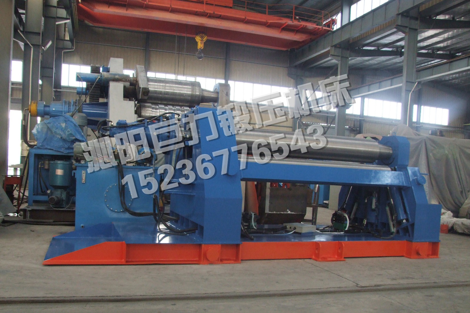 該四輥卷板機與對稱三輥卷板機比較,它可以不借助其它設(shè)備模具,直接予彎板材端部,而且剩余直邊較??;它可以不使板材調(diào)頭,而卷成工件。
