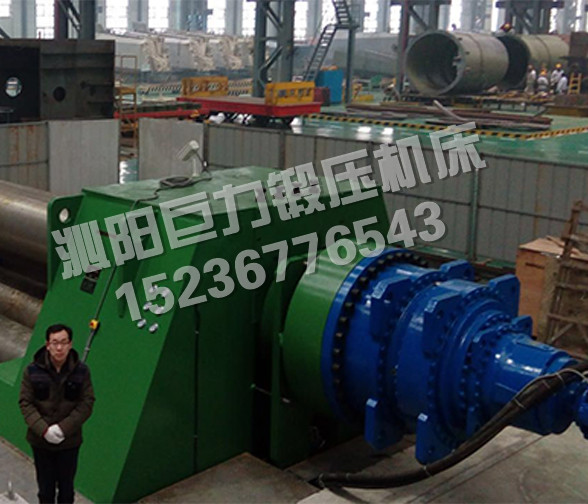 該四輥卷板機(jī)與對(duì)稱(chēng)三輥卷板機(jī)比較,它可以不借助其它設(shè)備模具,直接予彎板材端部,而且剩余直邊較小;它可以不使板材調(diào)頭,而卷成工件。
