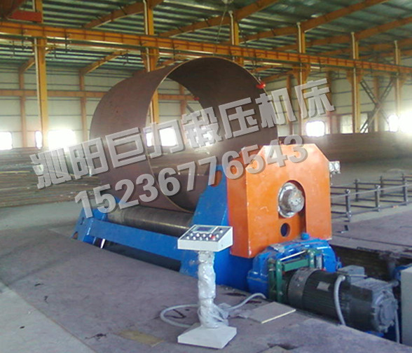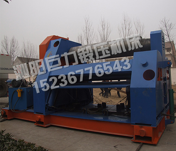 該四輥卷板機(jī)與對(duì)稱三輥卷板機(jī)比較,它可以不借助其它設(shè)備模具,直接予彎板材端部,而且剩余直邊較??;它可以不使板材調(diào)頭,而卷成工件。